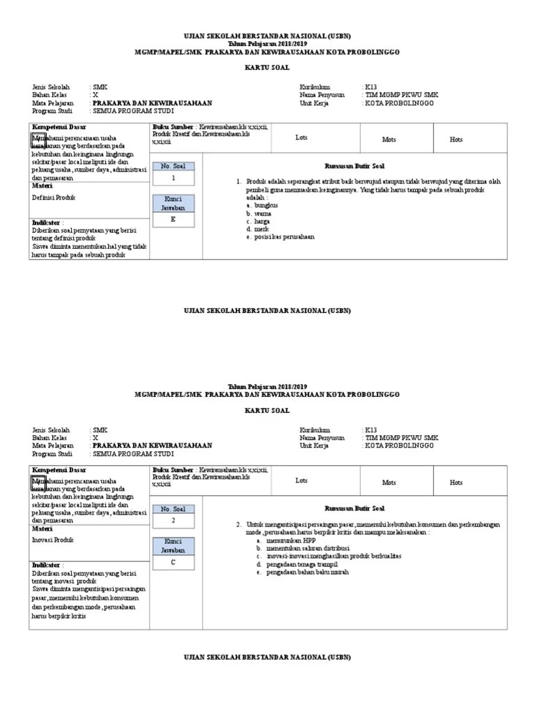 Contoh soal kewirausahaan (kwu) kelas 11 semester 1 dan semester 2.